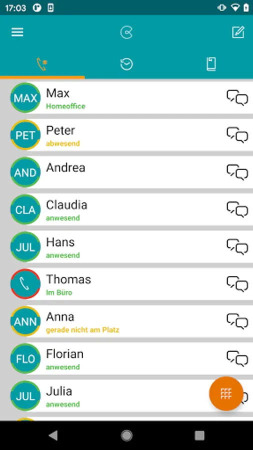 But you can do more! Thus, the online status of the colleagues are visible, whether he is on the phone or is reachable and also the diversions can be set on Cegecom. In the latest version, the app is now available for upcoming SIP calls and the latest push technology in future Android versions battery-saving available!