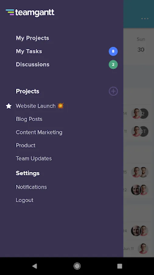 To view your timeline, create projects, and access full TeamGantt functionality, log into TeamGantt.com.