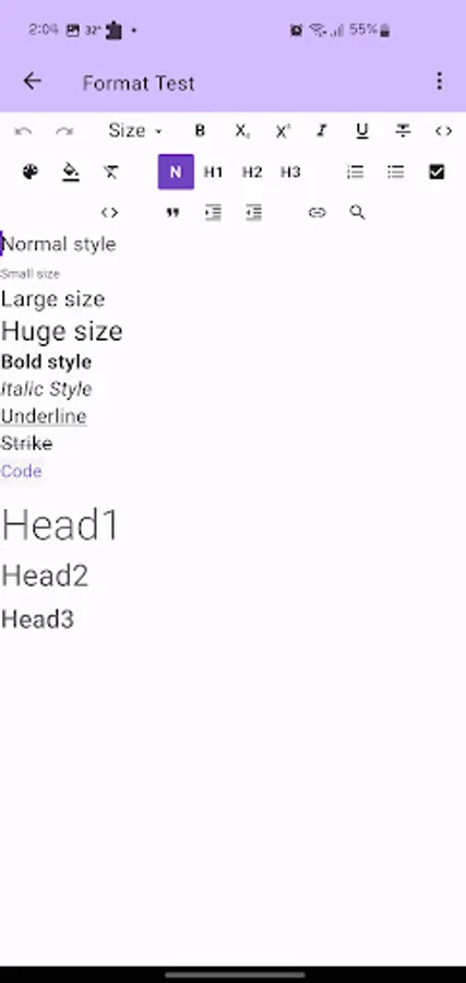 Supports styles such as size, color, bold, italic, underline, and strike.