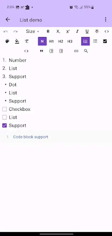 Supports complex forms like checkboxes, code blocks, quotes, indents, lists, and hyperlinks.