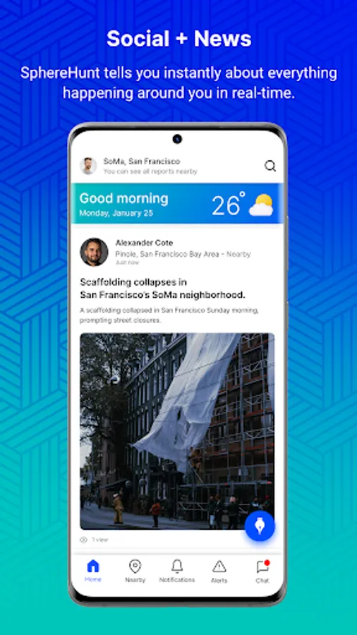 SphereHunt gives you real time alerts that matter. Receive location specific alerts around you.