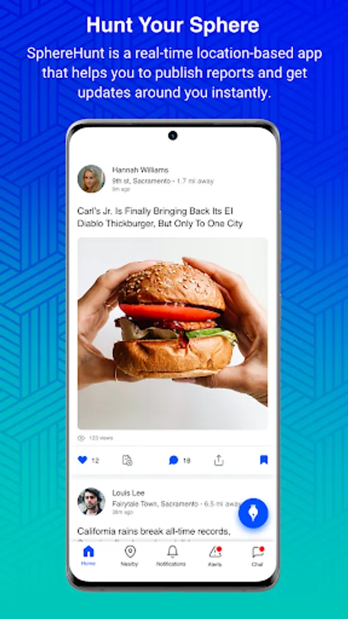 SphereHunt is a real time location-based app that helps you to publish your reports and get updates around you instantly.