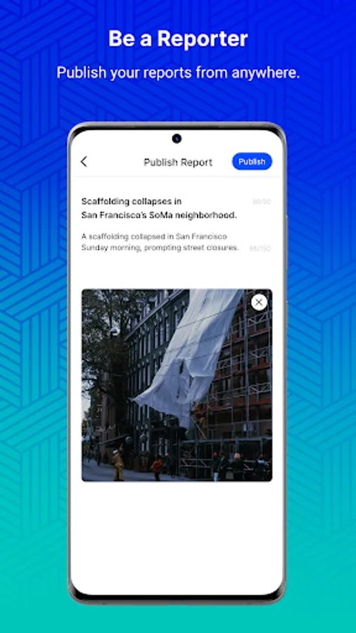 Publish your reports from anywhere. Help the community around you to be aware about incidents, events and much more.