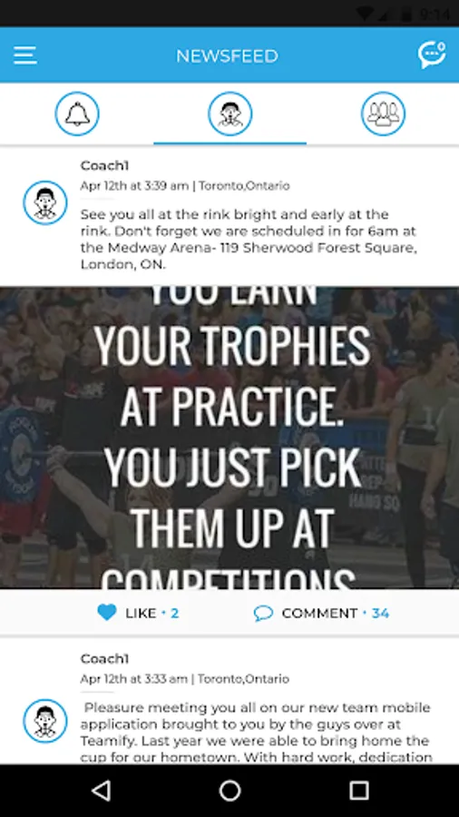 -Coach to Player Private Newsfeed