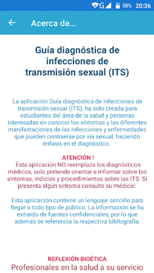 App guide students in the area of health and people interested in knowing the symptoms and the different manifestations of the diseases that can be contracted through sex.