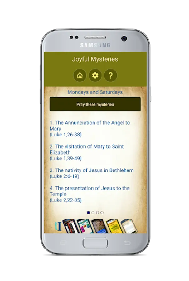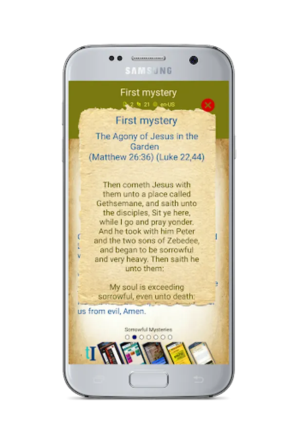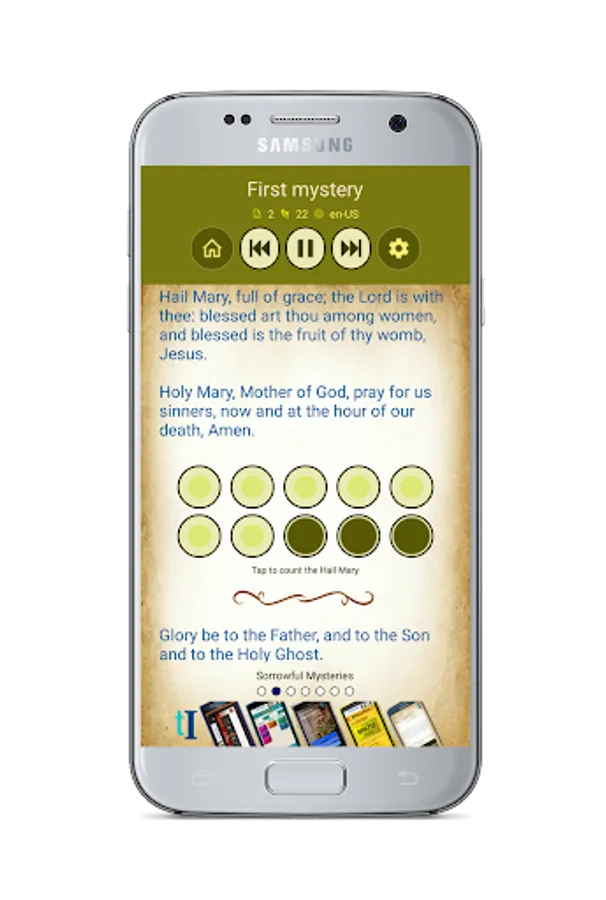 The Holy Rosary is a Catholic traditional prayer which commemorates mysteries of the life of Jesus Christ and the Virgin Mary, reciting an our father, ten Hail Mary and a glory after each of them. The App displays the current day and automatically creates all the Rosary with all the mysteries. Carries accounts from 10 Hail Mary for each mystery and saved in the device progress the rosary so it can continue in the event of interruption.