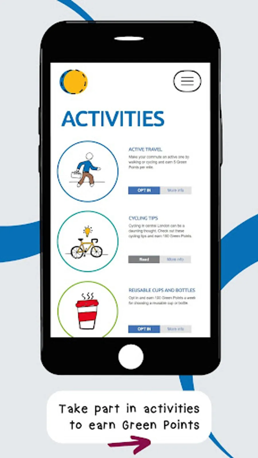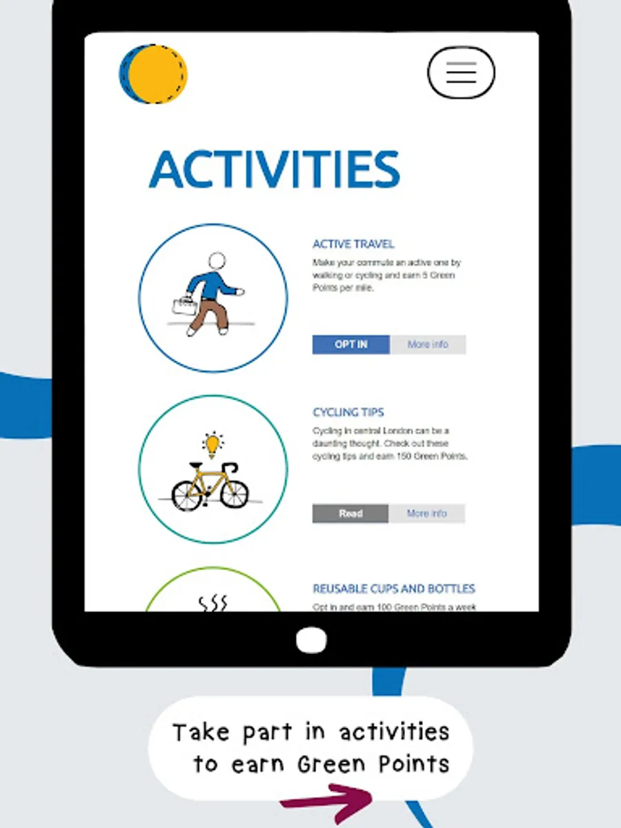 With this app you will be able to earn Green Points for your actions in themes including Get Involved, Air Quality, Travel, Recycling, Carbon Footprint, Sustainable Purchasing and Health and Wellbeing.