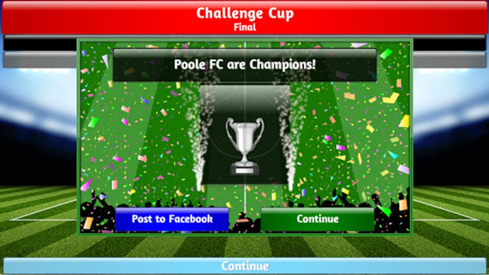 Share to Social Media - Just took your hometown team and turned them into a European footballing giant? Why not post it on Facebook or Twitter and let your friends and family know about it! Every time you win a trophy or Head to Head Series you can share it on Social Media.