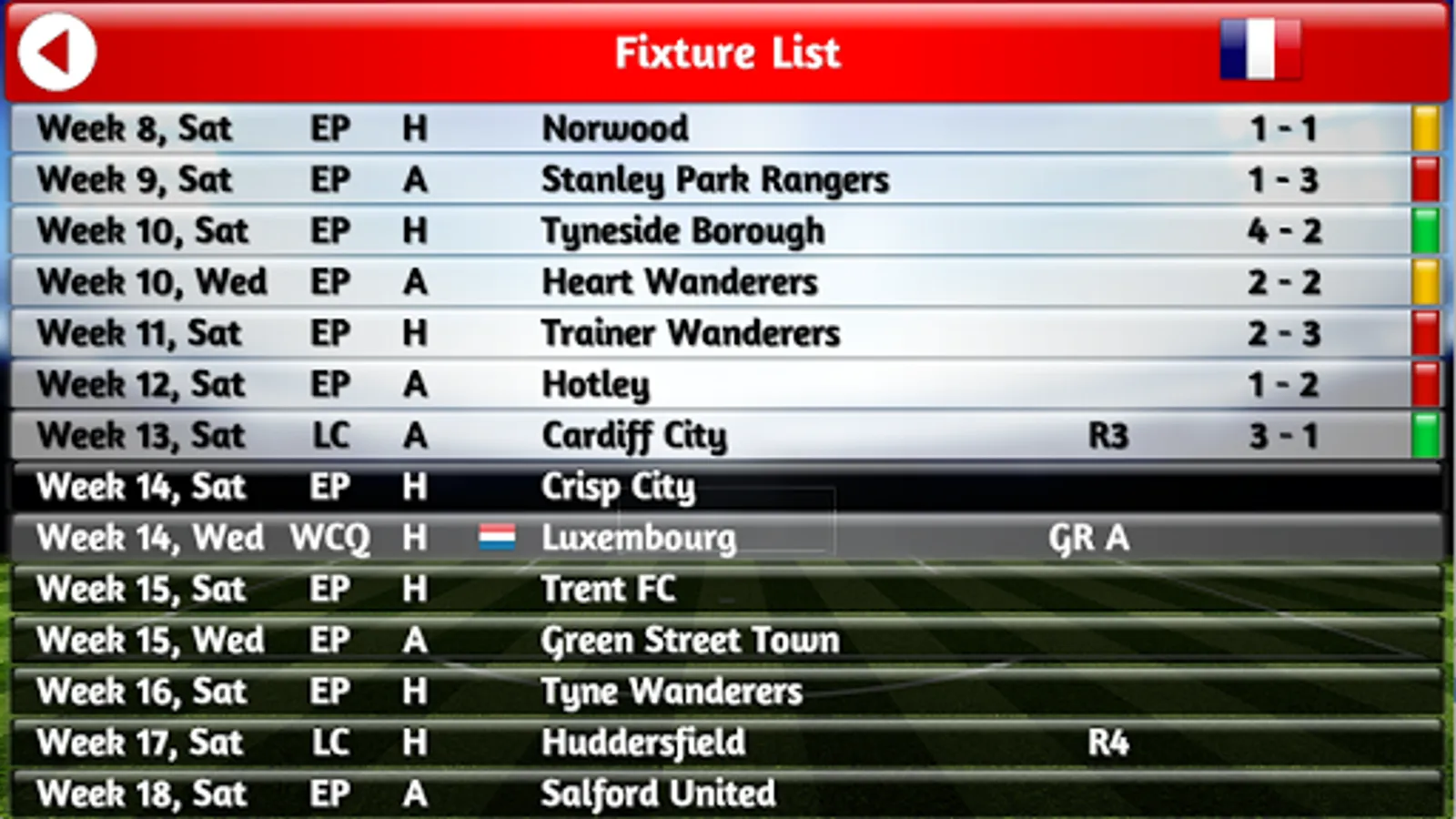 Head to Head - Play 90 min matches against friends and family, storing all your stats, including number of 'Series' wins and losses. Each 'Series' is first to 5 wins.