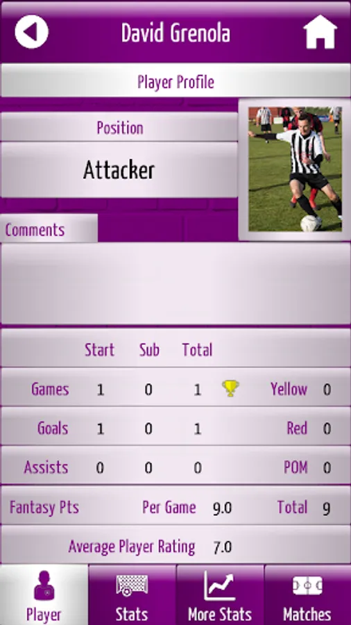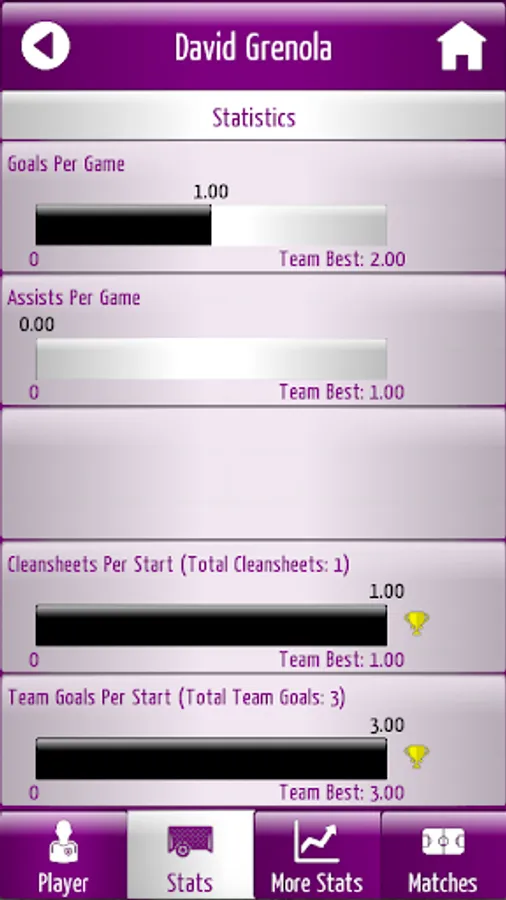 Matches - keep records of all games including goal and assist information, player ratings, line-ups, substitutes, formations and more!