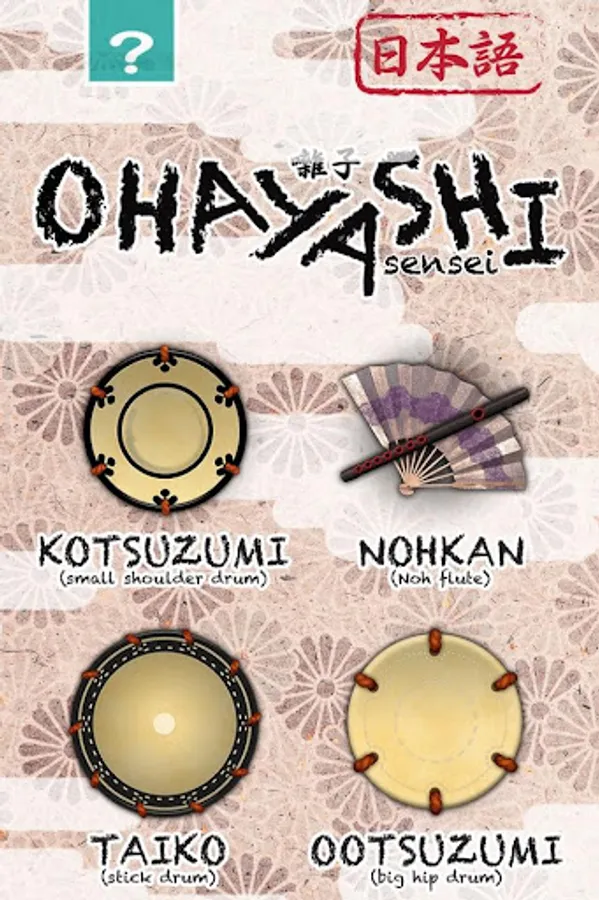 OHAYASHI SENSEI was developed with the support of the Japanese Agency for Cultural Affairs in order to help elementary school teachers present the peculiar instruments and styles of Japanese traditional music. The app represents all four instruments very faithfully - all of the recorded sound samples were performed by professional hayashi musicians on the Noh stage of Yamamoto Nohgakudo in Osaka, Japan. There are also explanations about the role and peculiarities of each instrument.