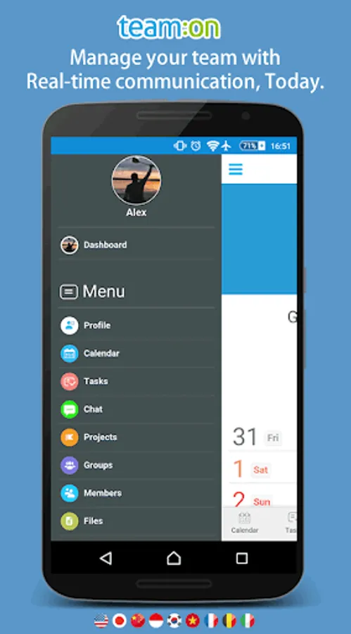 TeamOn supports over 12 world languages, and is a Team Calendar, Team Task, Group Chat, Project manager, and File storage unified work productivity cloud service for your everyday work needs.
