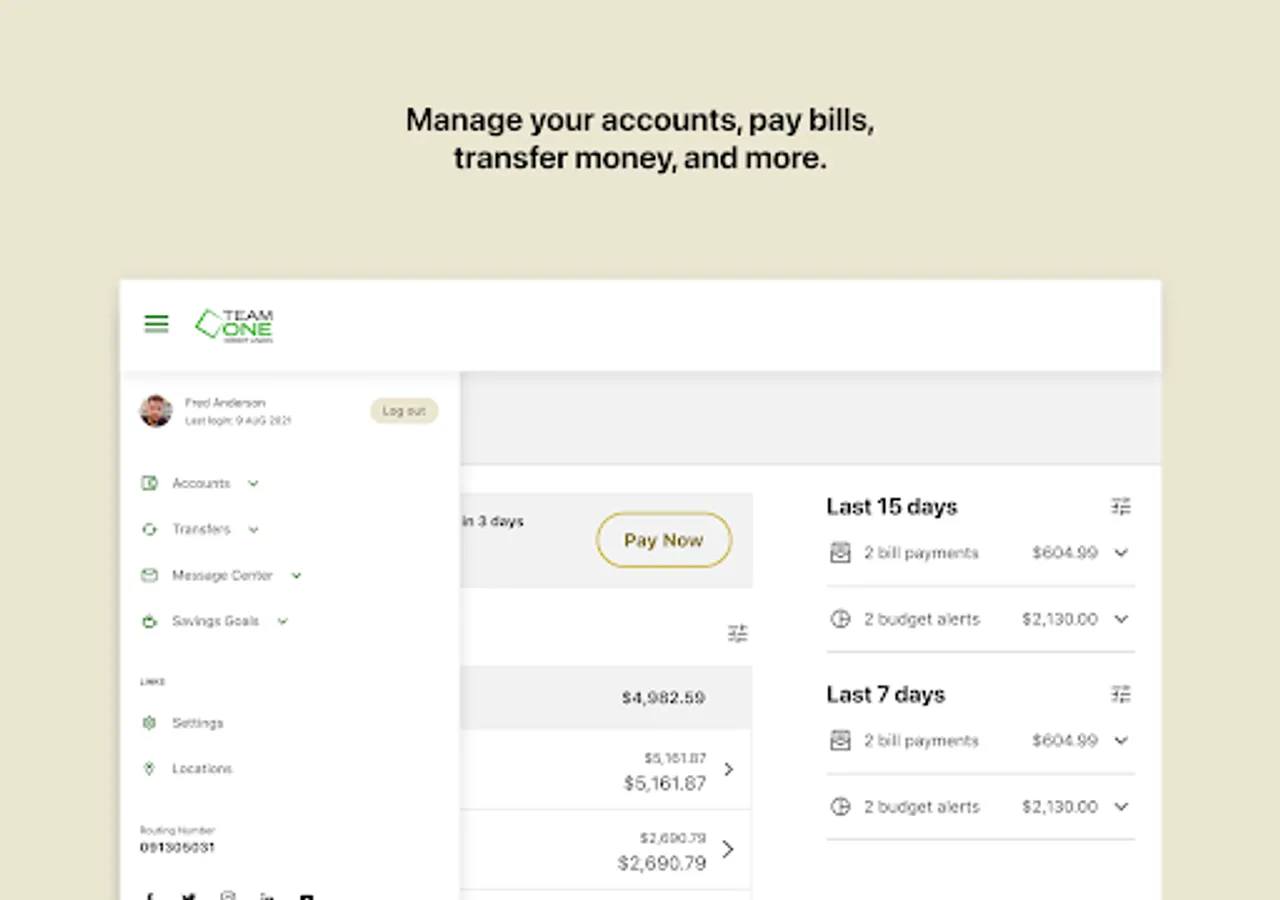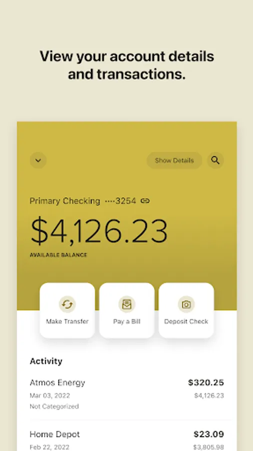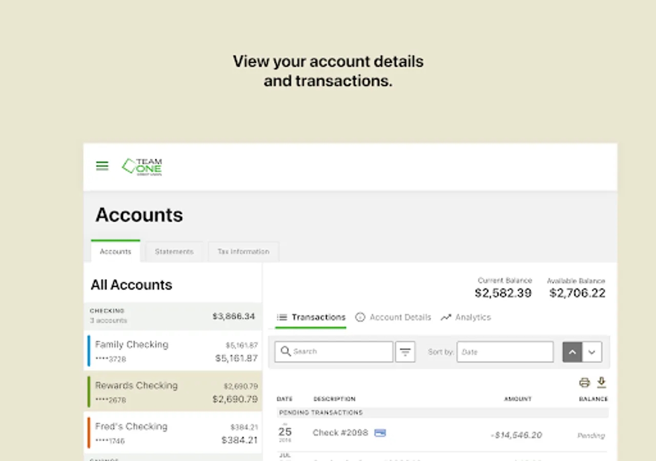 • Check balances, transfer funds, make payments and manage both personal and business in one convenient place including credit cards, mortgages and more.