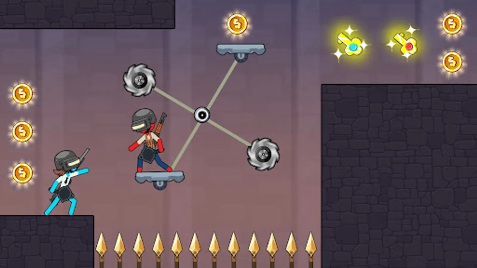 Stick Red and Blue 3 is an addictive puzzle game where you have to synchronize two stickman. Control both Red Boy and Blue Girl at the same time and use the buttons to move, push boxes and collect coins to reach the exit in the forest.