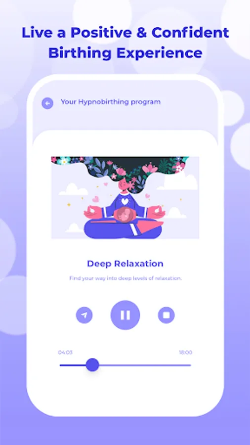 Discover how fear and pain does NOT have to be part of giving birth. This hypnobirthing program contains effective audios in which you will learn different relaxation techniques, as well as guided imagery and breathing. By using these programs you will cultivate a positive mindset and trust your body for a confident and relaxed birth.
