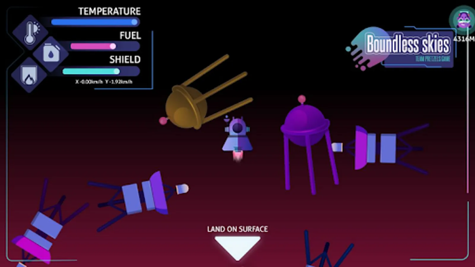 Boundless Skies is an action video game inspired by classic arcade systems, but with a modern twist. This vertical scroller requires deep focus and agility. The player explores different planets to find one suitable to inhabit, all while evading dangers like space debris and asteroids.