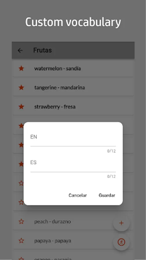 When learning new languages we have different problems, you take language classes and learn all the grammar rules, but at the end you don't speak the language. Do you feel that your vocabulary is not enough? That it is difficult to learn new words in Spanish? Then just practice with Vocabulary flashcards and you will learn new words that can quickly improve your vocabulary. You can make your flashcards with words of your choice or use our predefined word sets.