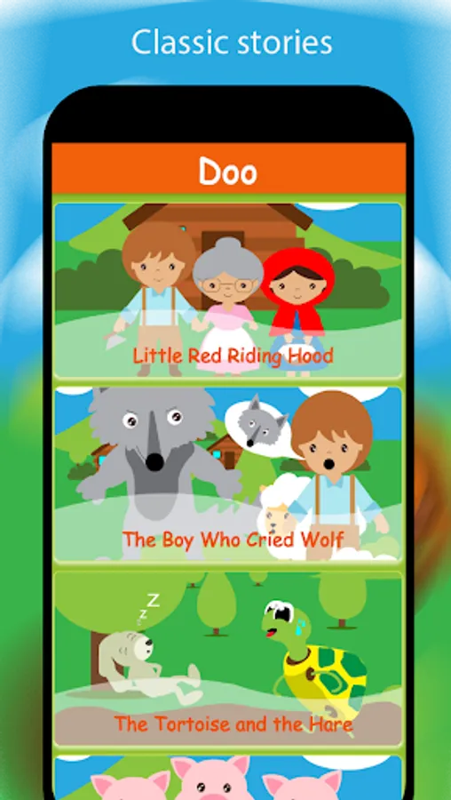 Therefore, the objective of Doo (educational stories for kids) is to provide short stories for kids from which you can read from different situations, analyze and reflect on them, with the ease that you can take them on your mobile to anywhere completely free.