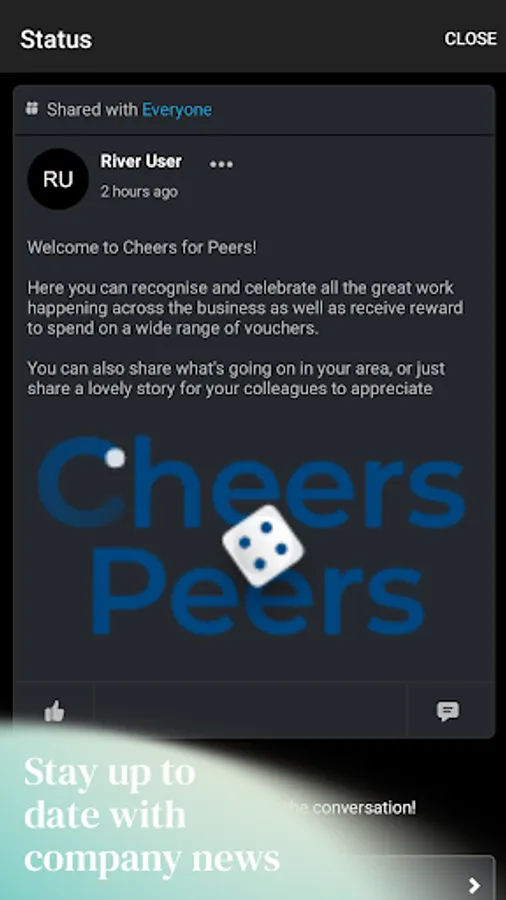 Cheers for Peers is a Recognition, Reward and Benefits tool offering an online community for FSB’s employees to share what's going on, recognise their colleagues, explore employee benefits, shop for discounted vouchers and stay up to date with the latest company news.