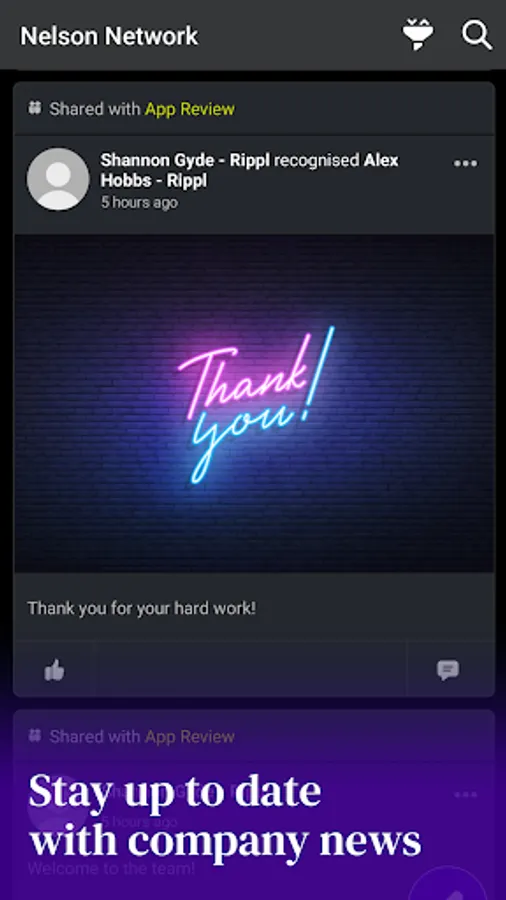 The Nelson Network app provides a platform for peer recognition, rewards, and benefits in the workplace. Stay up to date with workplace news, recognise your colleagues for exceptional performance and achievement, and access a range of exclusive employee benefits.