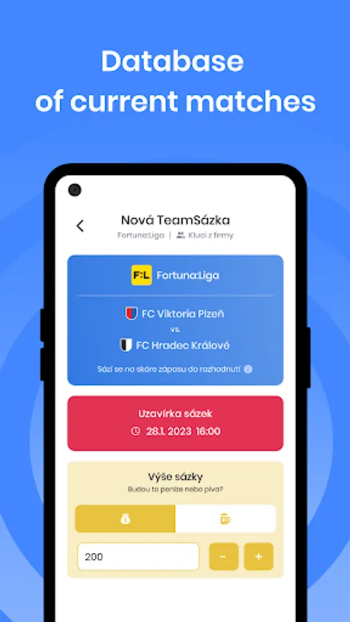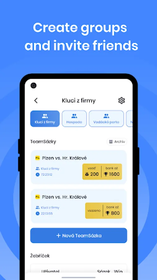 TeamBets allows you to bet on sports matches with your friends or work colleagues. You can create closed groups to bet for beer or money. The app itself will evaluate the winners and determine how much to pay out to who.