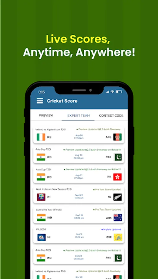 • Cricket Score is a free service provider for Fantasy players. We never ask for any money from any of our app users.