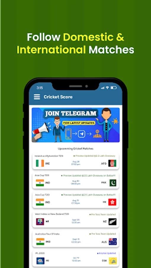 • Cricket Score is not responsible for your money loss on any of the fantasy sites or apps.