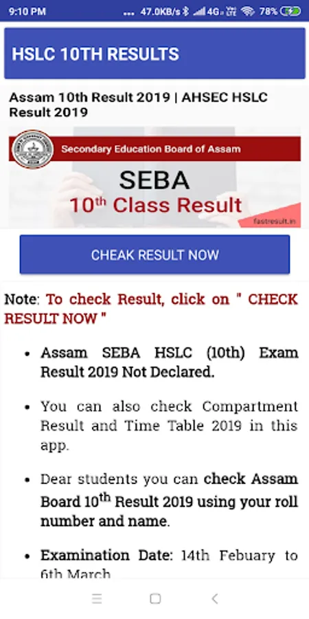 If you want to cheak results of assam board exam HSLC and HS then this app is help you to cheak result of 2019 faster.