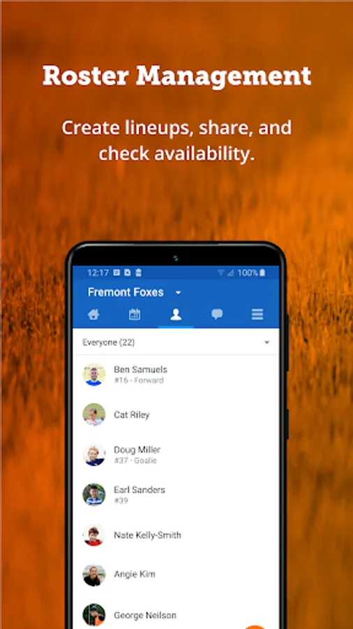 ▶︎ Communication: Send messages to your entire team or select groups; let players know about last-minute changes with push notifications or text messages