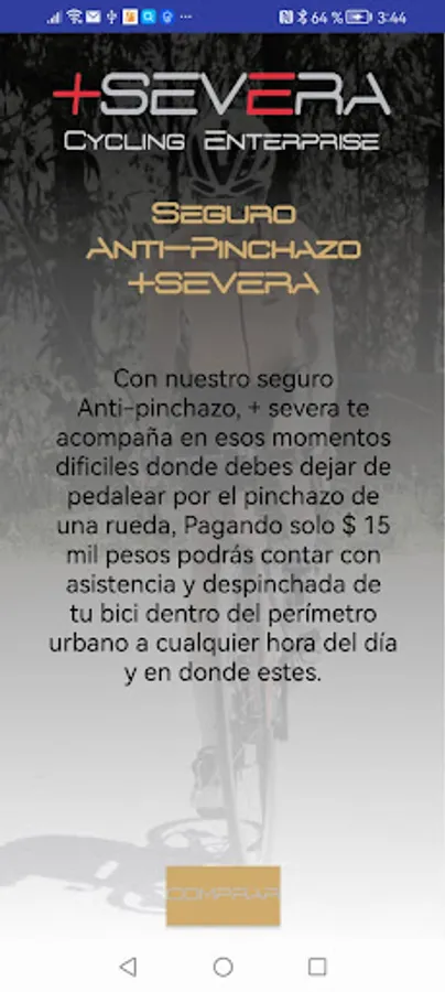 Application that provides services for cyclists, with services such as route monitoring, Bike Fit, insurance, personal training, and product sales for cyclists.