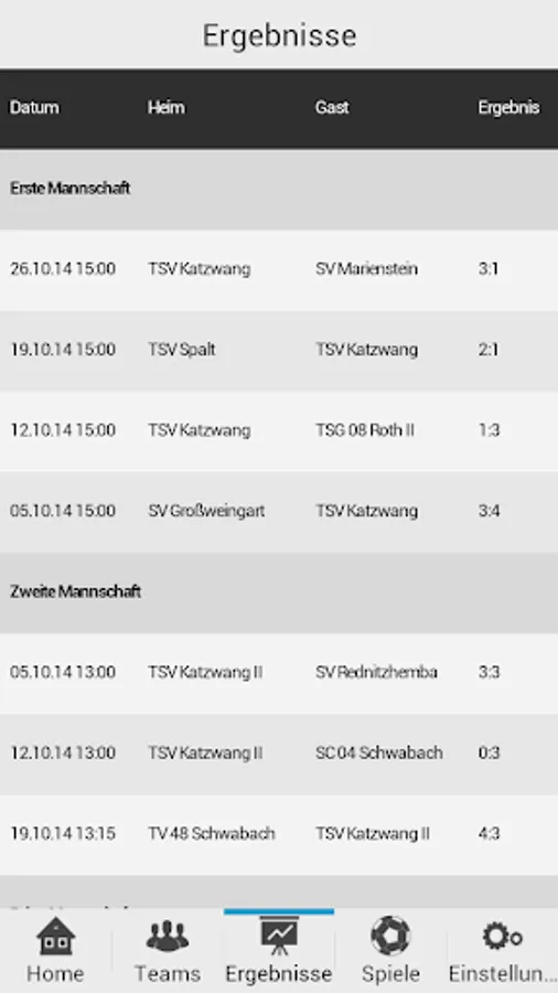 * Results of the Teams