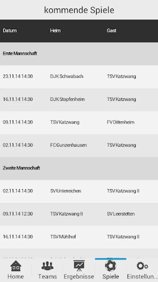 * Game schedules of teams