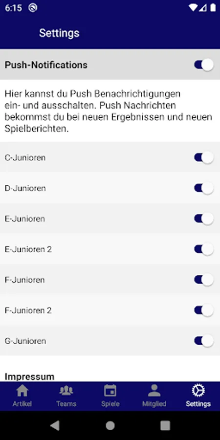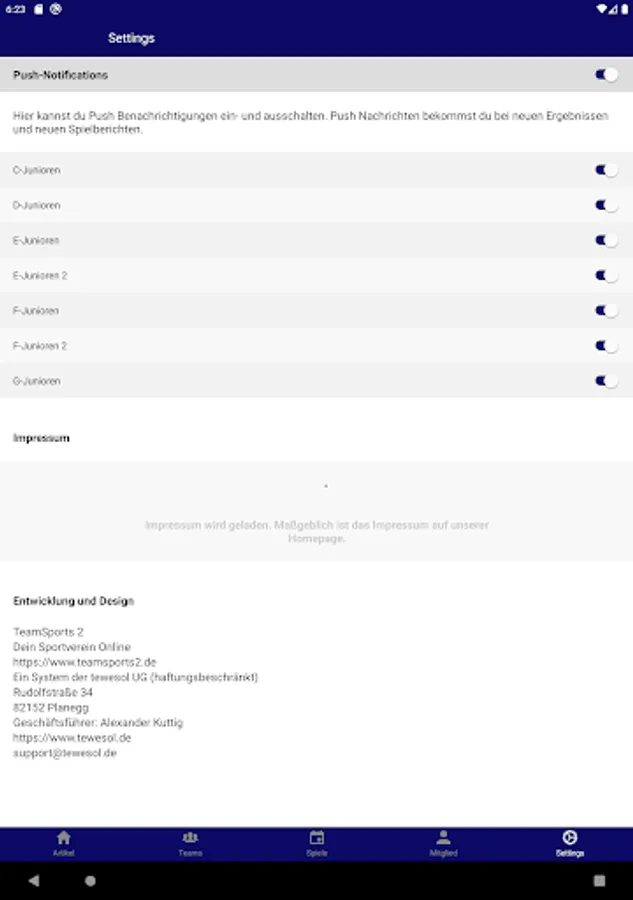 You always have the latest results, tables, reports and the team squad on your Android phone or tablet, as well as reports and team squad. Via push notification you will be informed immediately about new results and reports. You can quickly organize yourself in individual groups for teams and trainers.