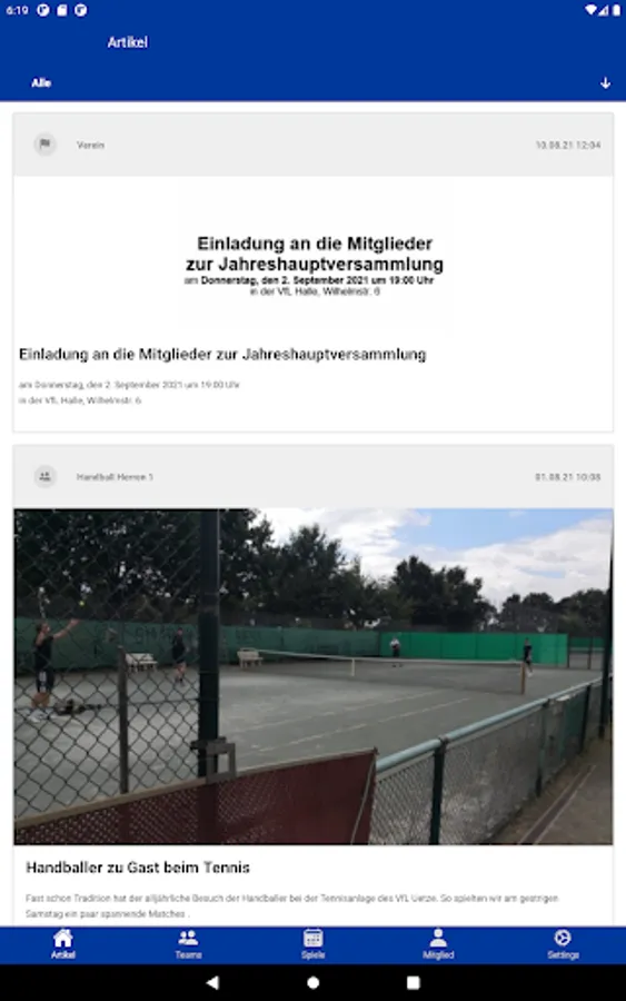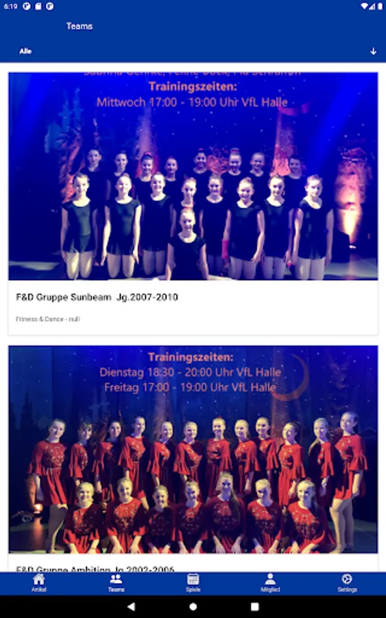 You always have the latest results, tables, reports and the team squad on your Android phone or tablet, as well as reports and team squads. You will be informed immediately about new results and reports via push notification. You can quickly organize yourself in individual groups for teams and trainers.