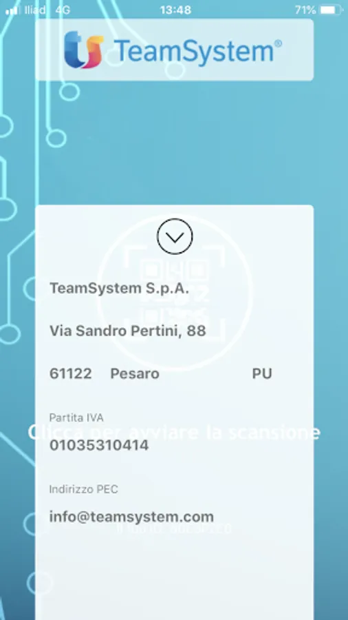 Thanks to TeamSystem Digital Invoice QR you can use the camera of your smartphone to recognize the QR code issued by the revenue agency and allow the management to acquire the personal data of your customers needed to issue the electronic invoice.