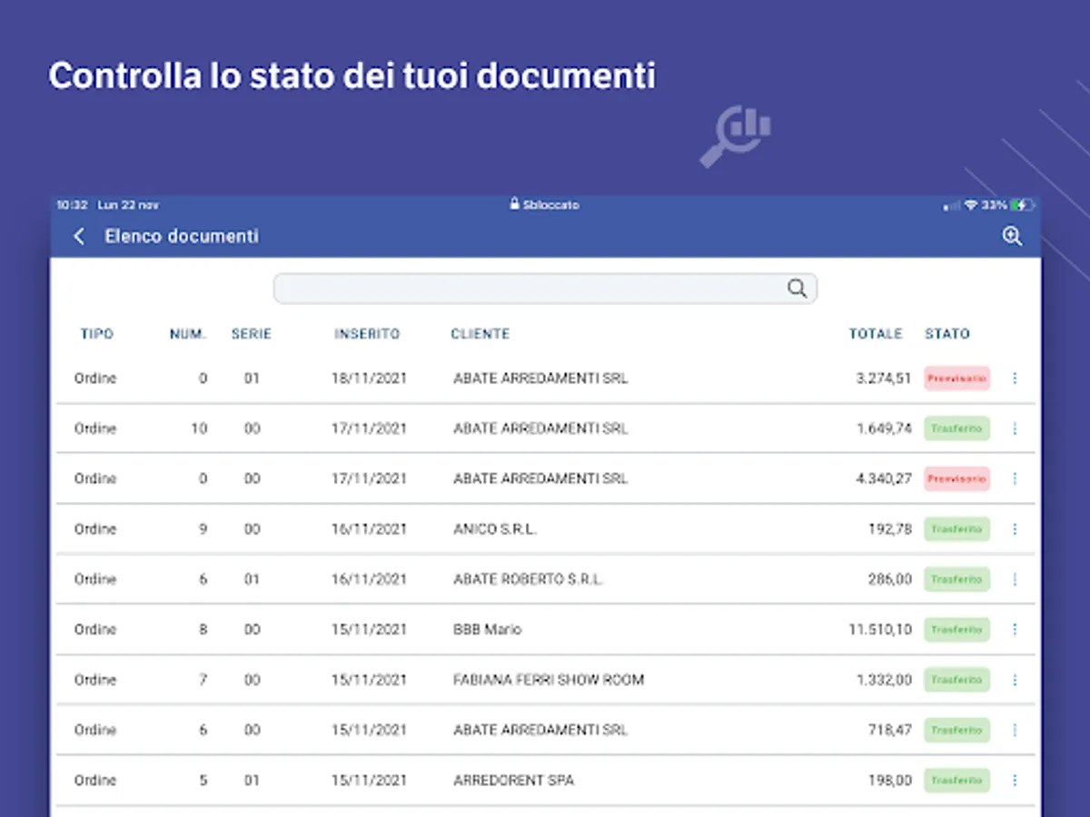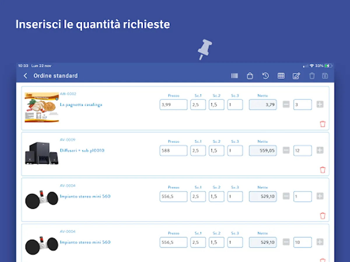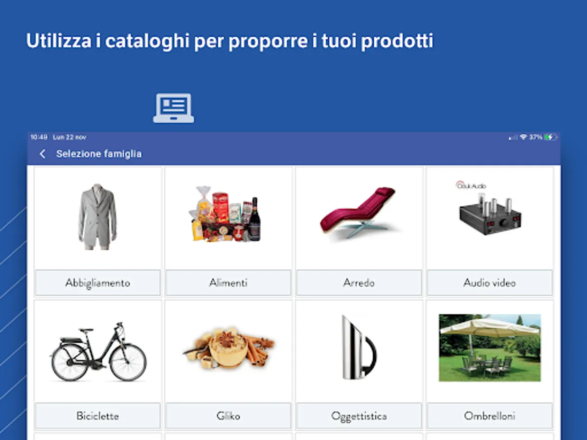 Completely designed for the cloud, it allows the collection of documents (offers, estimates, orders, etc.) providing the agent with a series of tools that are now indispensable for dealing with the relationship with the customer, such as product catalogs, price lists management, related management and administrative information.