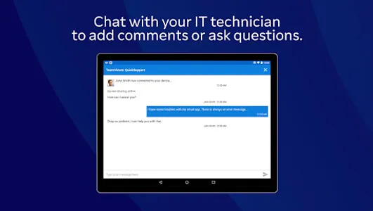 Get support for your mobile device from any Windows or Mac computer! You can now receive technical remote support for your mobile devices. Technicians have the ability to chat, transfer files back and forth, view device information, stop processes, push and pull Wi-Fi settings, and much more.