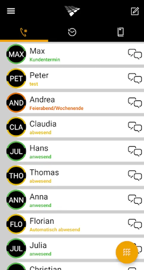 - You can see the status of your employees, as if you were sitting at your workplace. The following is displayed if your employee is free or busy tone.