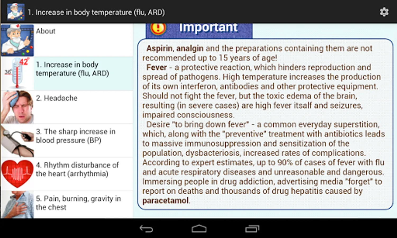 Presents action in case of the most common diseases, injuries, damage in the home and on the road before the arrival of medical assistance. Errors are pre-medical self-help, consumer manifestations of drug dependence.