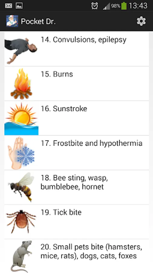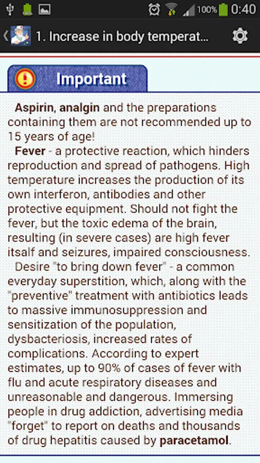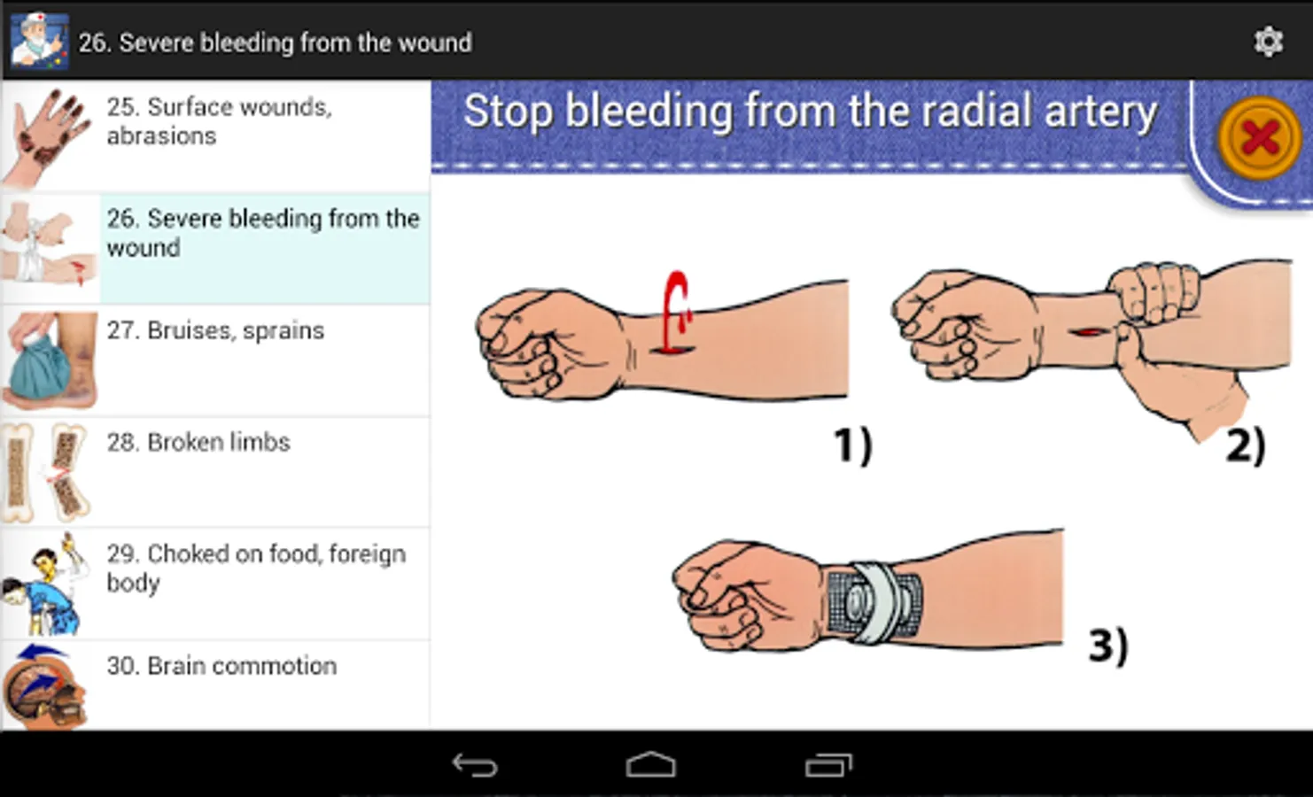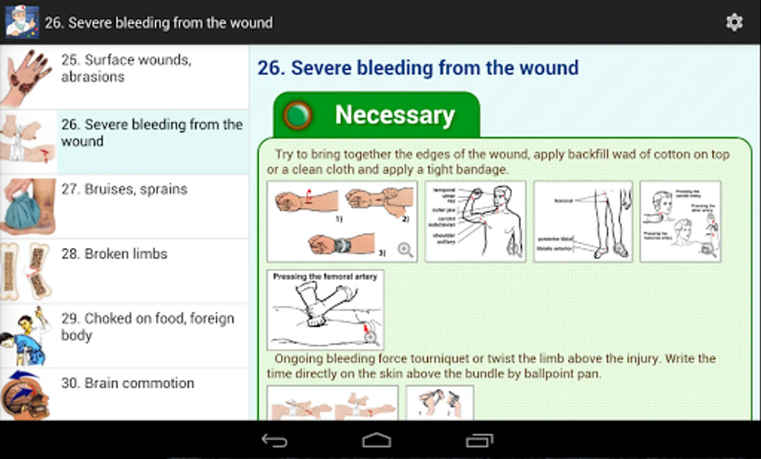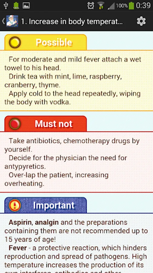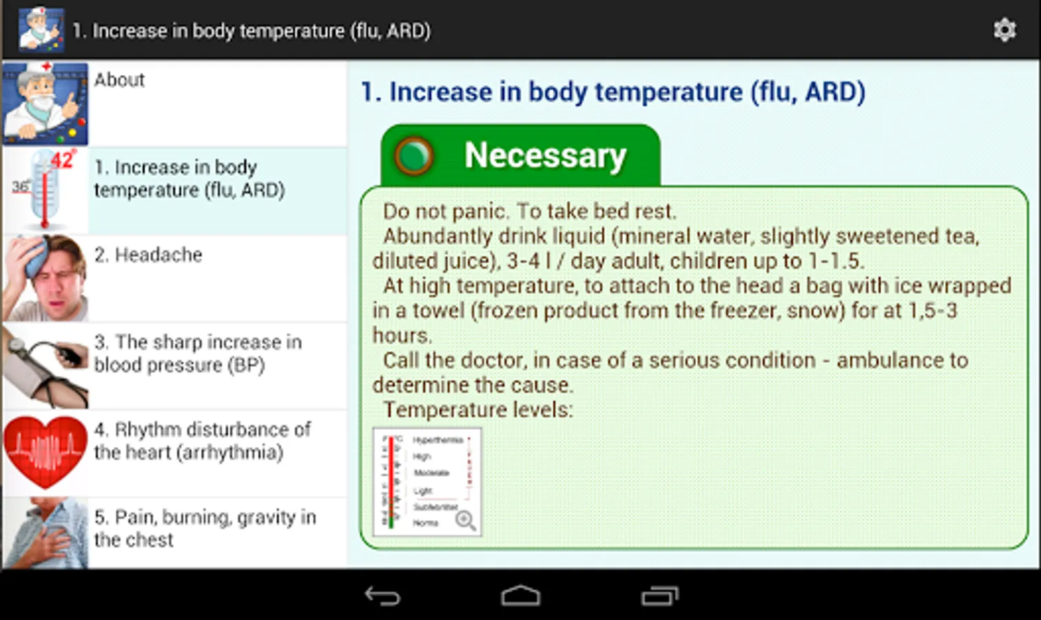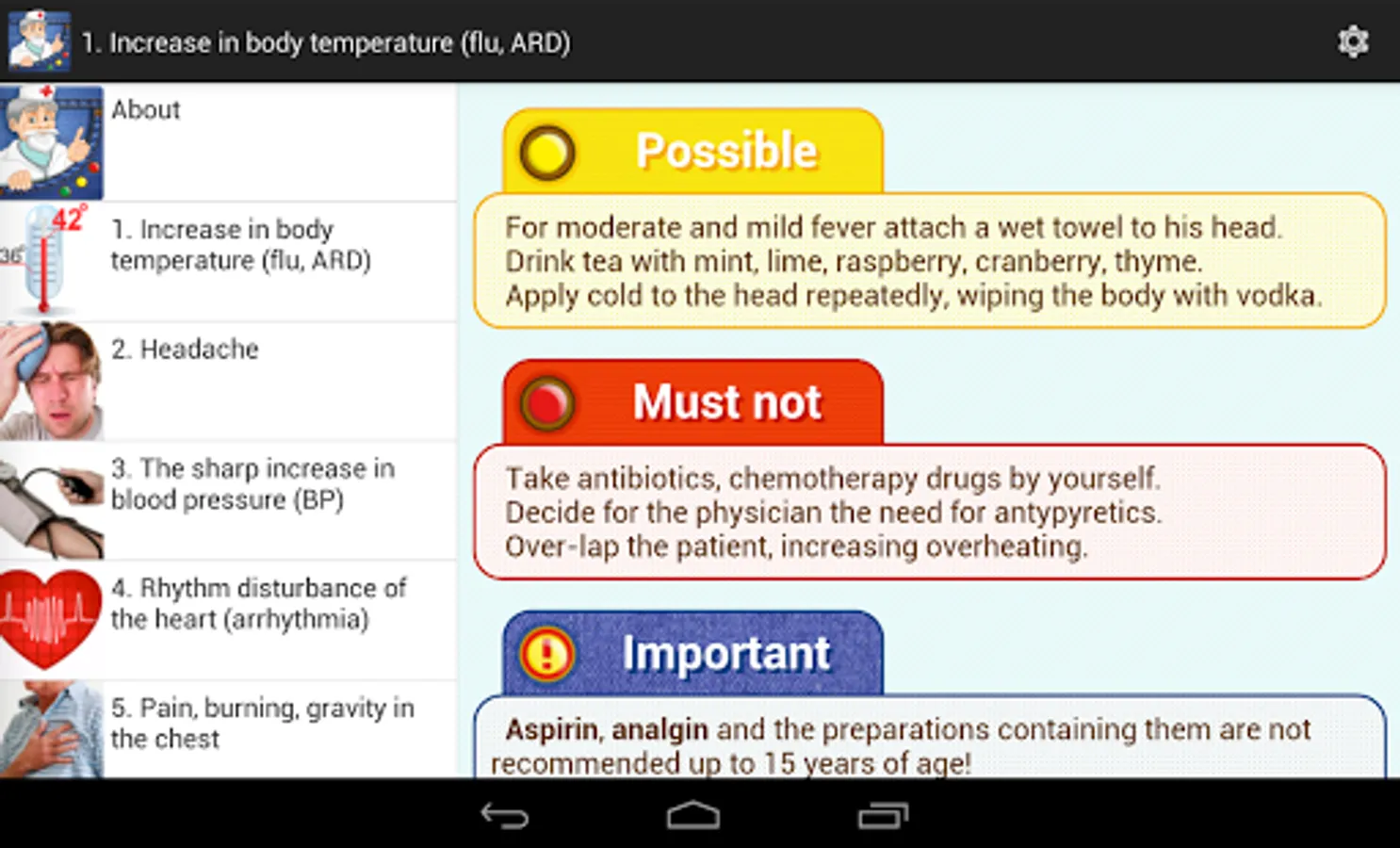 Covered the situation with fainting and nose bleeding, fever and food poisoning, insect bites and animals, thermal burns and stinging, a sharp increase in blood pressure, accidents.