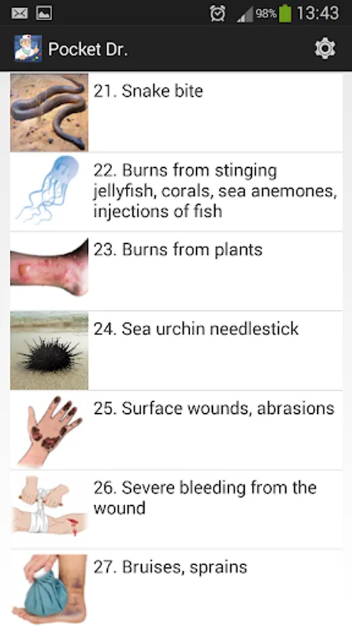 41. Burns from stinging jellyfish, corals, sea anemones, injections of fish