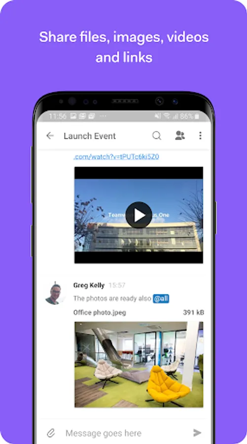 - File sharing: Make decisions and give feedback with context by attaching files, images, videos and links that are relevant to the conversation.