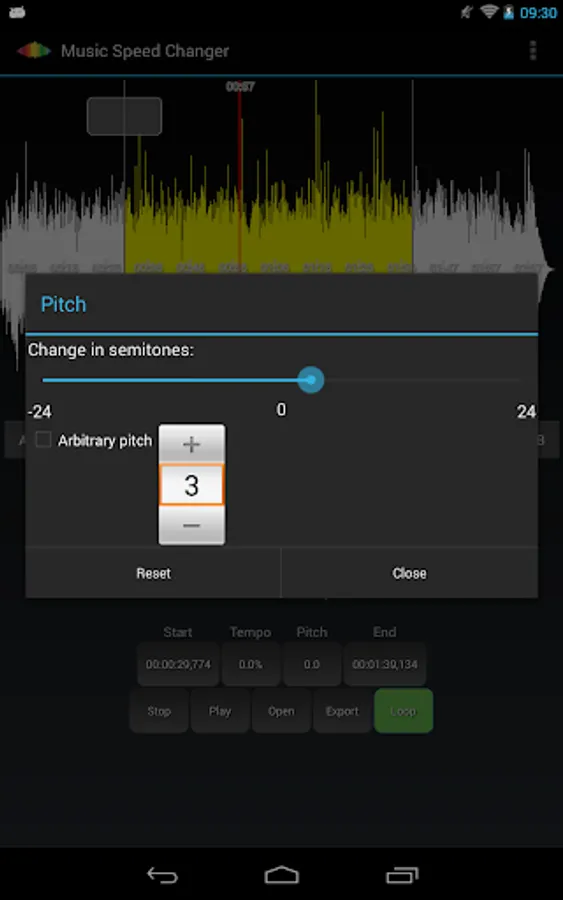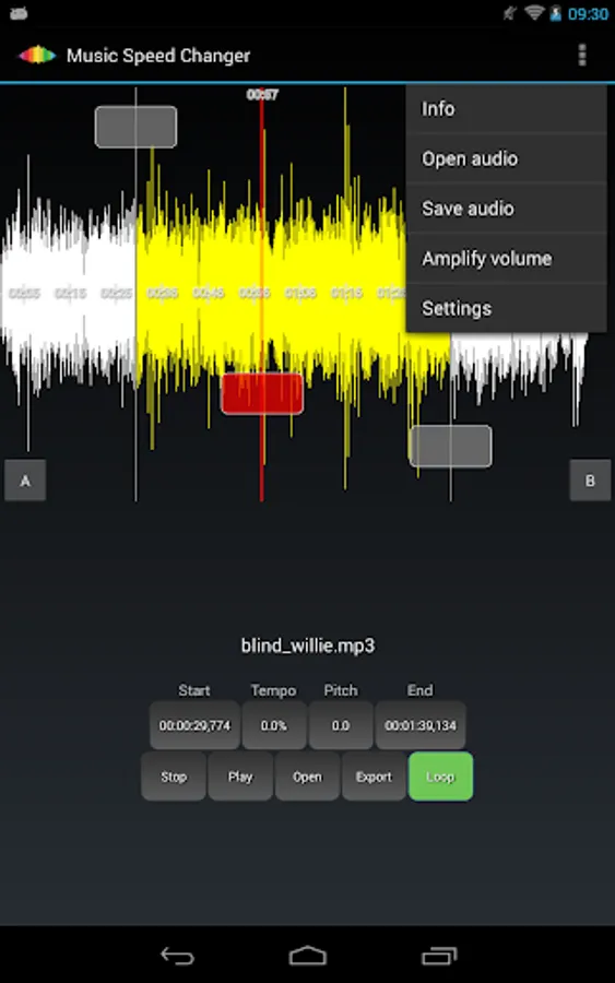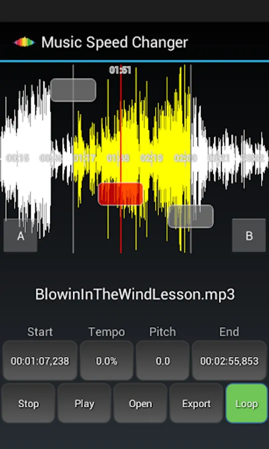 Music Speed Changer changes audio tempo (speed) and pitch in realtime quick and easy. Just select an audio file, mark the region you want to play (and loop/repeat) and change tempo and pitch on the fly.