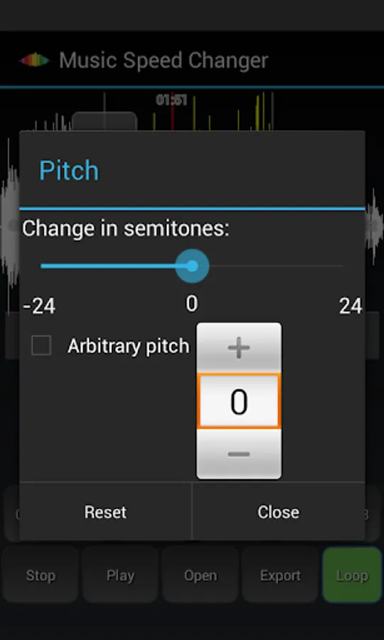 Note: Extreme pitch and tempo changes (for instance 24 semi-tones, which is quite a lot!) can lead to noise.