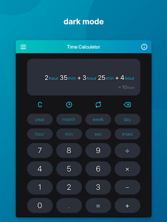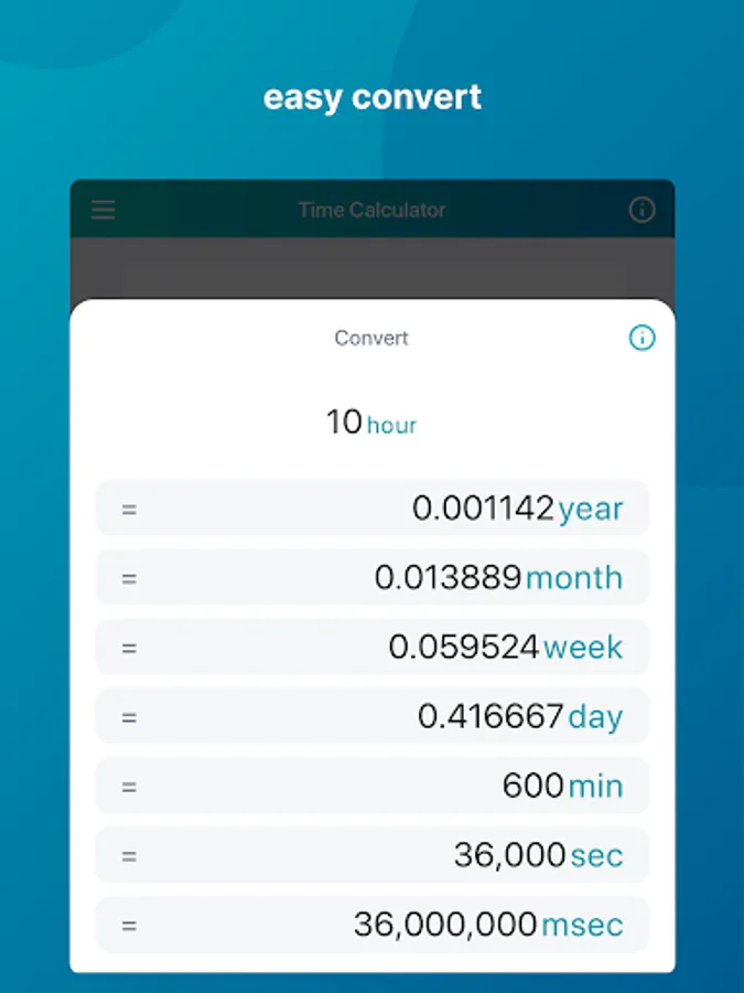This app will help you calculate Hours, Minutes, Seconds, Millisecond and more