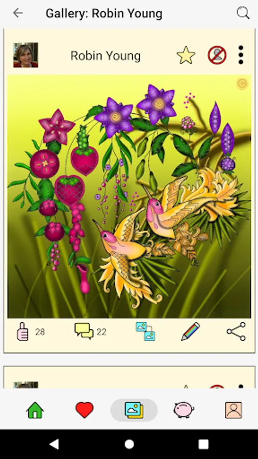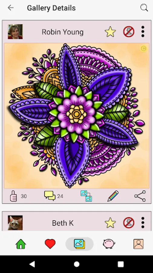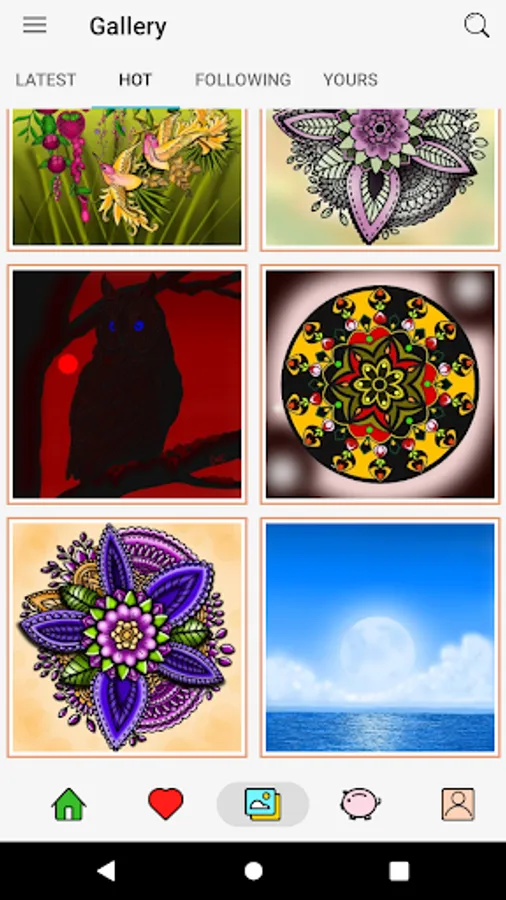 Floral pictures, animals, and sea creatures are ready to be colored in by you. Take as long as you like to perfect your creation, or maybe just a quick dab and share to impress your friends!