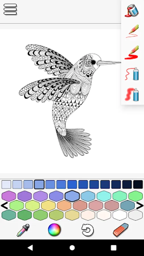 You can fill with a tap, or paint with strokes. There is an unlimited color palette to choose from, and different brush widths available.