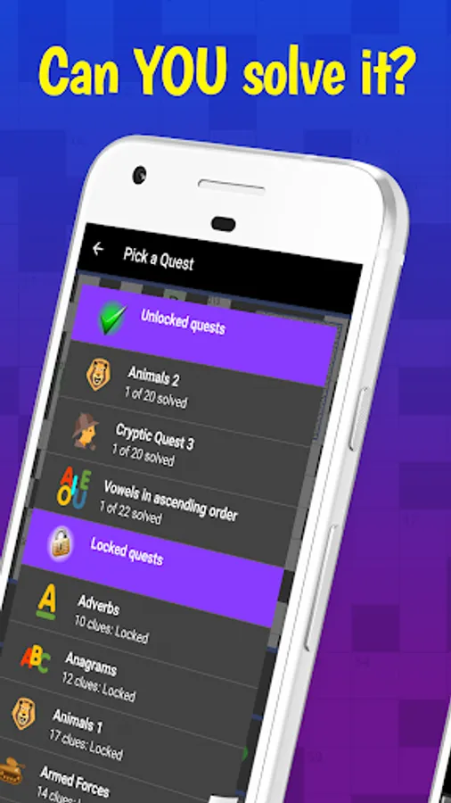 - Quest mode, where each clue has been carefully crafted into a corresponding quest. There are over 80 quests to complete.