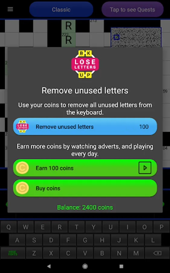 The game features in-app purchases to buy coins for hints, or you can watch reward adverts instead.