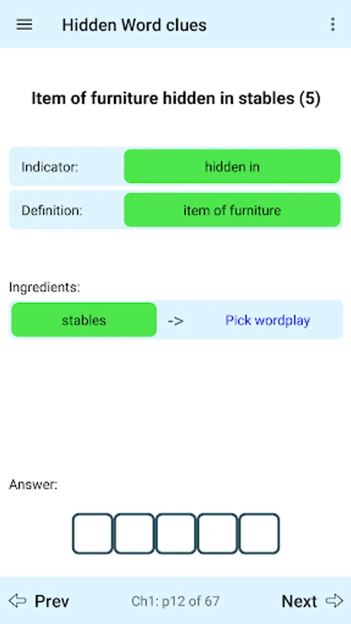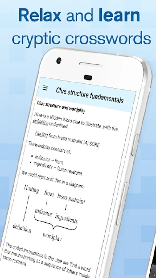 Learn how to solve cryptic crosswords with this interactive app, starting with the basic ideas and easiest types of clue.